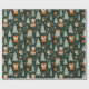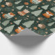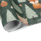 Whimsical Christmas Tree with Red Fox Dark Green Wrapping Paper