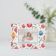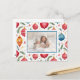 Your friends and relatives will smile when they receive your Christmas postcard that features the family photo along with this whimsical ornaments design. The pattern is cute with its bright, cheery holiday colours of red, blue, and yellow in a vintage watercolor. Pine tree bough wisps and Yuletide ephemera are part of the scene. The text is in red typography, including "Merry Christmas" on the reverse of this postcard, and can be edited. You can keep, change, or delete the suggested paragraph sentiment. Be sure to edit the example family and individual names to the ones you intend as well as the date or leave them out if you want this side of the postcard to be blank.