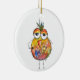 Whimsical Colourful Bird Drinking Coffee Ceramic Ornament