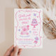 A whimsical girl birthday invitation in a soft pink coquette aesthetic. This unique hand drawn design features a teddy bear, cake, bows, and butterflies for a girly, pastel party theme. Perfect for girls of any age.
