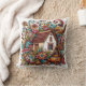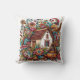 Whimsical cottage surrounded by vibrant foliage throw pillow