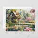 Whimsical Cottage with Rhododendrons and Pond Postcard