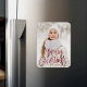 Magnet photo de vacances mignon avec "Joyeux Noël" en vedette au bas du design dans un script manuscrit de cranberry. Personnalisez l'aimant de Noël fantaisiste avec votre photo verticale et le nom de votre famille.