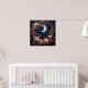 "Whimsical Crescent Bloom" is a beautiful poster design that captures the magic of a starry night. A radiant crescent moon glows against a deep blue, star-filled sky, all framed by a swirling, golden border and a profusion of delicate pink and purple flowers. This enchanting image is perfect for adding a touch of fantasy to any room.
