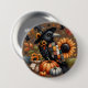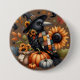 Whimsical Crow with Pumpkins and Sunflowers 3 Inch Round Button