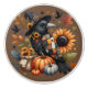 Whimsical Crow with Pumpkins and Sunflowers Ceramic Knob