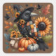 Whimsical Crow with Pumpkins and Sunflowers Square Sticker
