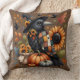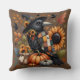 Whimsical Crow with Pumpkins and Sunflowers Throw Pillow