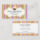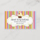 © 2011 Socialite Designs. Our whimsical cupcake bakery business card design has a colourful striped background, a cupcake with creamy icing and cherry on top. The doodle banner holds your text. Do you require HELP with customizing this business card? Please do not hesitate to contact me with your requirements.
