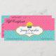 © 2013 Socialite Designs. Cute cupcake gift certificates incorporating a whimsical cupcake with a ribbon, pink polka-dot and turquoise bubble background. The template text can be customized with your own business text and font style. All design elements can be moved, resized, rotated or deleted to suit you. If you require HELP with customizing this gift certificate template or would like colour changes, please do not hesitate to contact Socialite Designs.
