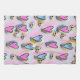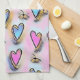 Colourful drawing of cute whimsical hearts with pastel pink, blue and orange colours and cute designs