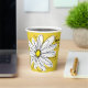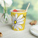 A large, whimsical drawing of a daisy on a yellow background. You can add a name, monogram or other custom text. If you need to move the art around, click on the customize button to make changes.