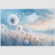 Capture the magic of a breezy day with this whimsical decoupage tissue paper featuring delicate dandelion fluff floating through the air in soft watercolor strokes. The serene blend of blue and white hues creates a dreamy, airy design perfect for nature-inspired DIY projects, rustic decor, and creative upcycling.