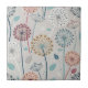 Dandelion Pattern Ceramic Tile - A charming seamless pattern featuring whimsical, stylized flowers and intricate dandelion seed heads, paired with abstract botanical details. The muted palette of blues, teals, yellow, red, orange, and white on a soft grey-blue background creates a soothing, harmonious look.