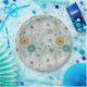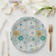 Dandelion Pattern Paper Plate - A charming seamless pattern featuring whimsical, stylized flowers and intricate dandelion seed heads, paired with abstract botanical details. The muted palette of blues, teals, yellow, green, and white on a soft light grey-blue background creates a soothing, harmonious look.