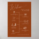 Introducing our whimsical desert wedding timeline sign, a modern design that captures the essence of October's burnt orange hues, creating a minimalist yet classic look that exudes warmth and charm. The design features a whimsical touch of elegance that inspires a delicate, vintage feel, setting the scene for a truly memorable wedding experience. Contact us with any questions about the design, and let us help you make the wedding of your dreams.