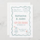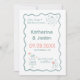 A lighthearted whimsical doodle styled wedding save the date design. Basic color is blue, the monogram of the bride and groom is also included on the bottle label element. Please personalize all text.