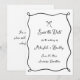Whimsical Hand Drawn Bow Black and White Wedding Save the Date with a wavy ribbon frame and handwriting style font. Add extra details to the reverse.
