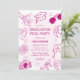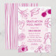 Unleash the spirit of summer fun with our whimsical doodle Graduation Pool Party invitation! Framed with pink doodle illustrations on a dusty pink background, this invitation captures the essence of sunshine and laughter. The modern grad party template, adorned with flip flops, scroll, camera, beach ball, motarboard, sunglasses, tropical palm leaves, inflatables and drinks, promises a celebration to remember. Perfect for grads who want to celebrate their success in the sun!
