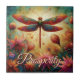 Whimsical Dragonfly Floral Abstract Art Prosperity Tile