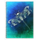 Whimsical Dragonfly Line Drawing Blue Green Notebook