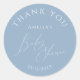 Introducing our whimsical dusty blue baby shower thank you favour classic round sticker, perfect for your simple modern boho spring or winter celebration! This sticker has a boho-chic vibe with elegant calligraphy and a minimalist white-on-blue design, making it ideal for boys. Plus, it's editable, so you can add your own classy, whimsical touch to create a truly beautiful and delicate design. Please feel free to reach out with any questions regarding the product's design; we are happy to help!
