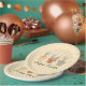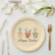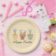 Make your Easter gatherings even more festive with these charming paper plates featuring a whimsical design of bunnies and carrots nestled in colourful polka-dot and chequered flower pots. The warm brown background and playful illustrations bring a cozy and cheerful touch to your holiday table, perfect for parties, picnics, and family celebrations.