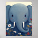 Whimsical Elephant and Flowers Poster