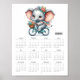 Whimsical Elephant on a Bicycle 2025 Wall Calendar Poster