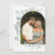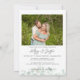 Set the tone for your dreamy wedding day with this Whimsical Eucalyptus Photo Wedding Invitation! Featuring delicate greenery accents and a space for your favourite photo, this invitation combines natural charm with an elegant and personal touch. Product Features: Customizable Design: Add your wedding details and upload a special photo to create a truly unique invitation. Flexible Options: Choose to download the digital file for instant sharing or have it professionally printed for a polished look. Whimsical Eucalyptus Theme: Perfect for rustic, boho, or modern weddings, this design adds a soft, romantic vibe. Versatile Size: Ideal for mailing or sharing digitally via text, email, or social media. Why You’ll Love It: This enchanting invitation beautifully blends elegance and personalization, creating the perfect first impression for your big day. Whether you print or go digital, it’s a timeless choice that your guests will love.