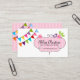 © 2011 Socialite Designs. Our whimsical event styling and design business cards are perfect for a event stylist business or event catering business such as dessert tables and event planning. The business card design has colourful banners, whimsical flower and bird with a doodle banner. Personalize this fun event planner business card with your information. Need HELP with customizing? Please do not hesitate to contact Socialite Designs with your requirements.