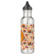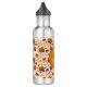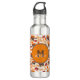 Whimsical Fall theme stainless steel water bottle features wheelbarrows of pumpkins, small floral bouquets and pale orange and white stripes.  Customize with name and initial