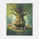 Whimsical Father Tree with Woodland Creatures Fleece Blanket