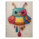 This charming notebook features a whimsical felt owl crafted in a vibrant palette of teal, magenta, orange, yellow, and blue. The design mimics hand-sewn stitching and layered textures, capturing the cozy essence of handmade textile art. With its wide eyes, colorful feathers, and dangling decorative elements, this owl radiates playful creativity and warmth—perfect for note-taking, journaling, or gift-giving.