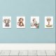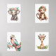 This elegant set of four watercolor safari prints includes a baby lion, giraffe, elephant, and zebra—each lovingly illustrated in soft, feminine tones. With blush florals, and delicate jungle greenery, this coordinated collection brings charm and sophistication to a baby girl’s nursery. Perfect for creating a cohesive safari or jungle-themed wall gallery with an upscale, modern aesthetic.