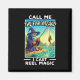 This whimsical image features a wizard dressed in a purple robe and hat, standing by a river or lake, holding a fishing rod with a fish on the line. The wizard has a long white beard, adding to the mystical feel, while the scenic background showcases mountains and a bright sky, enhancing the enchanting atmosphere. The text "THE FISH WIZARD" at the top adds a playful touch to this imaginative scene, blending elements of magic and everyday activity into a charming visual.