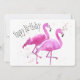Cute, pink flamingos birthday card. The perfect, whimsical card to wish someone a Happy Birthday.
