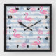 Whimsical Flamingo & Pineapple Pattern Square Wall Clock