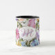 Dainty and Whimsical Flowers and Butterflies Monogram Mug. Colourful, Cheerful and Whimsical watercolor painting. Airy, carefree and customisable. Blue, Pink, Yellow, Purple, Orange,Mauve, Peach, Aqua, Red are just a few colours that are featured! My Dog’s paws dipped in watercolor, then I created flowers, butterflies out of the prints, leaves, green fronds and maybe a surprise within the painting!.. Fabulous gift giving products for many special occasions!