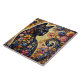 Whimsical Floral Black Cat Kitty Yellow Blue Tile