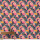 Immerse yourself in a vibrant, surreal garden where a stylized flamingo gracefully intertwines with lush, oversized blooms. This captivating design marries bold, fluid shapes with delicate floral elements, set against a deep navy backdrop. The playful colour palette of coral pink, teal, and marigold orange creates a striking contrast, evoking a sense of tropical warmth and modern sophistication. Perfect for fashion prints, home decor accents, or any project requiring a touch of whimsical elegance with a contemporary edge.