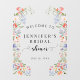 Elegant rustic botanical themed bridal shower welcome sign window cling featuring colorful wildwildflowers intertwined with lush greenery leaves. Perfect for spring or summer bridal celebrations.