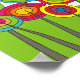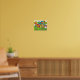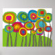 Whimsical Flower Art Poster in bright bold colours. Funky flowers, in colours of green, yellow, orange, bright blue and red.