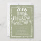 Celebrate love in full bloom with our charming sage green and white Floral Market Bridal Shower Invitation. This delightful design features a whimsical flower cart adorned with pots of vibrant blooms and a heartfelt sign that reads "Love is Blooming," personalized with the couple's names. The invitation is beautifully framed with a hand-drawn scribble doodle, adding a touch of artistic flair to your special event. Perfect for a rustic or garden-themed bridal shower, this invitation sets the tone for a memorable celebration filled with love and joy.