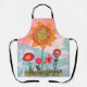 Whimsical flowers adorn this adorable Apron, created in mixed media, in bright colors of red, orange and pink, a most delightful work of art.