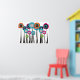 Whimsical Flowers Art Poster IV, bright, bold colourful flowers in fuschia, bright blue, lime green, orange and red with black stems.