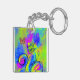 WHIMSICAL FLOWERS & BUTTERFLIES blue green yellow Keychain