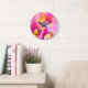 WHIMSICAL FLOWERS pink yellow teal blue Large Clock