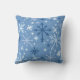 Whimsical flurry of blue snowflakes on sky blue throw pillow