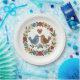 Whimsical Folk Art Birds & Floral Wreath Wedding Paper Plate